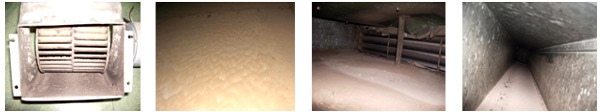 ○ 送風(fēng)系統(tǒng)包括送/回/新風(fēng)管道內(nèi)部、通風(fēng)機(jī)組內(nèi)部、送風(fēng)口等長(zhǎng)期得不到清潔,導(dǎo)致灰塵、油污積聚,因?yàn)闇囟葷穸冗m宜,使螨蟲、細(xì)菌、病毒大量地滋生、積聚和擴(kuò)散;